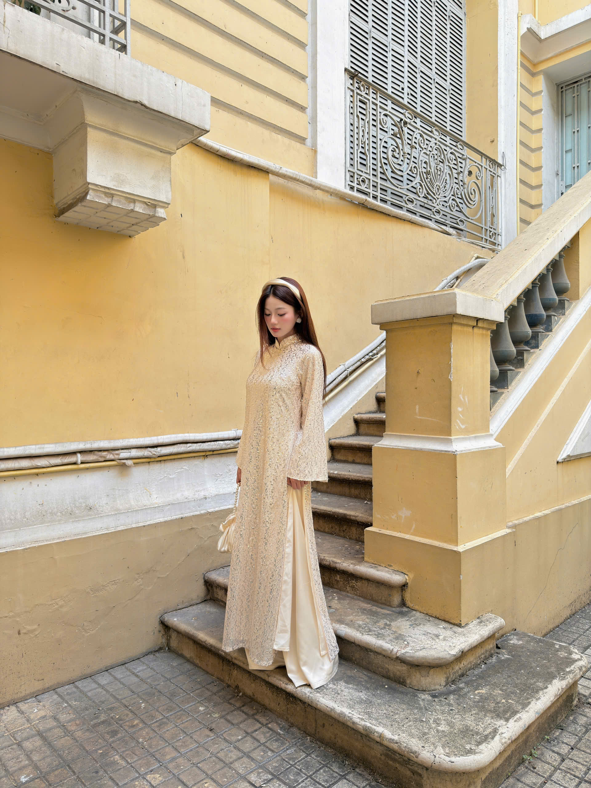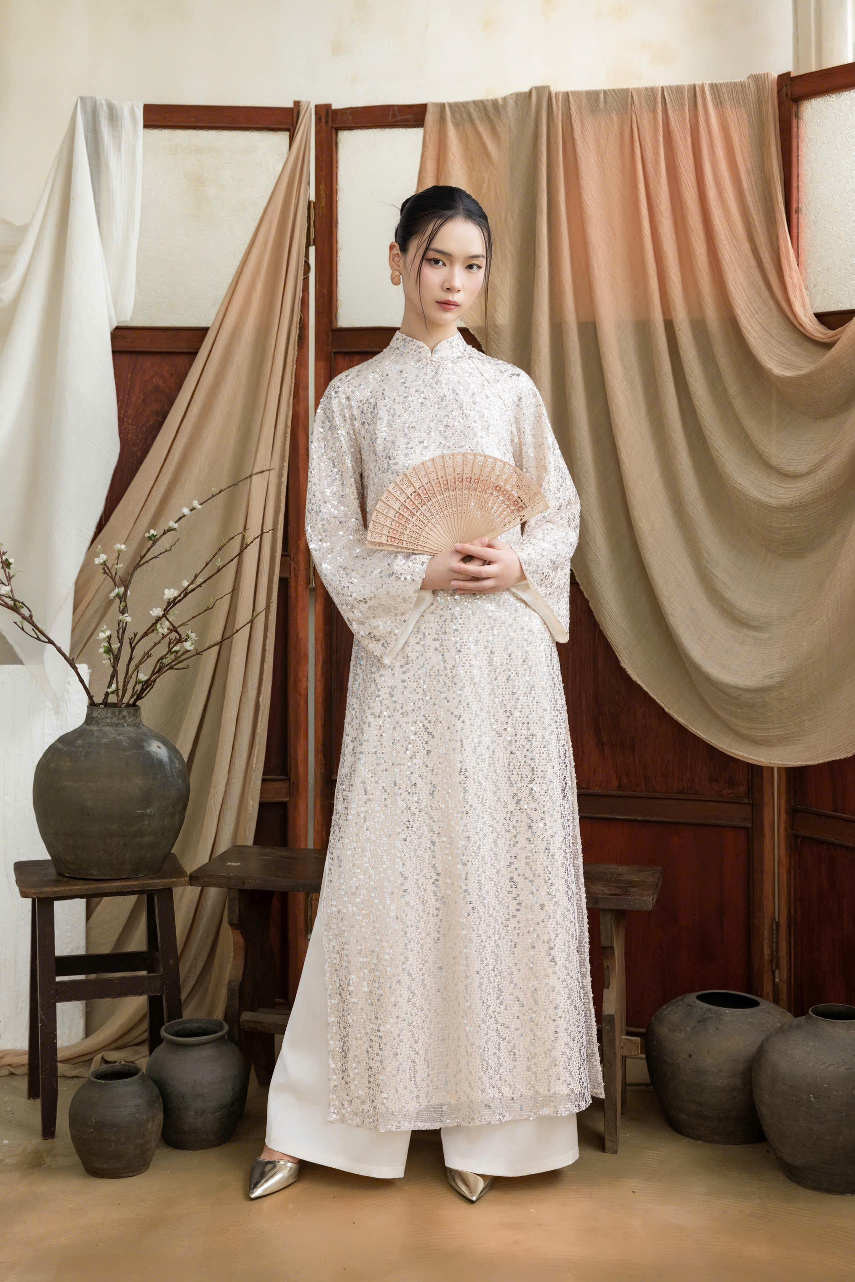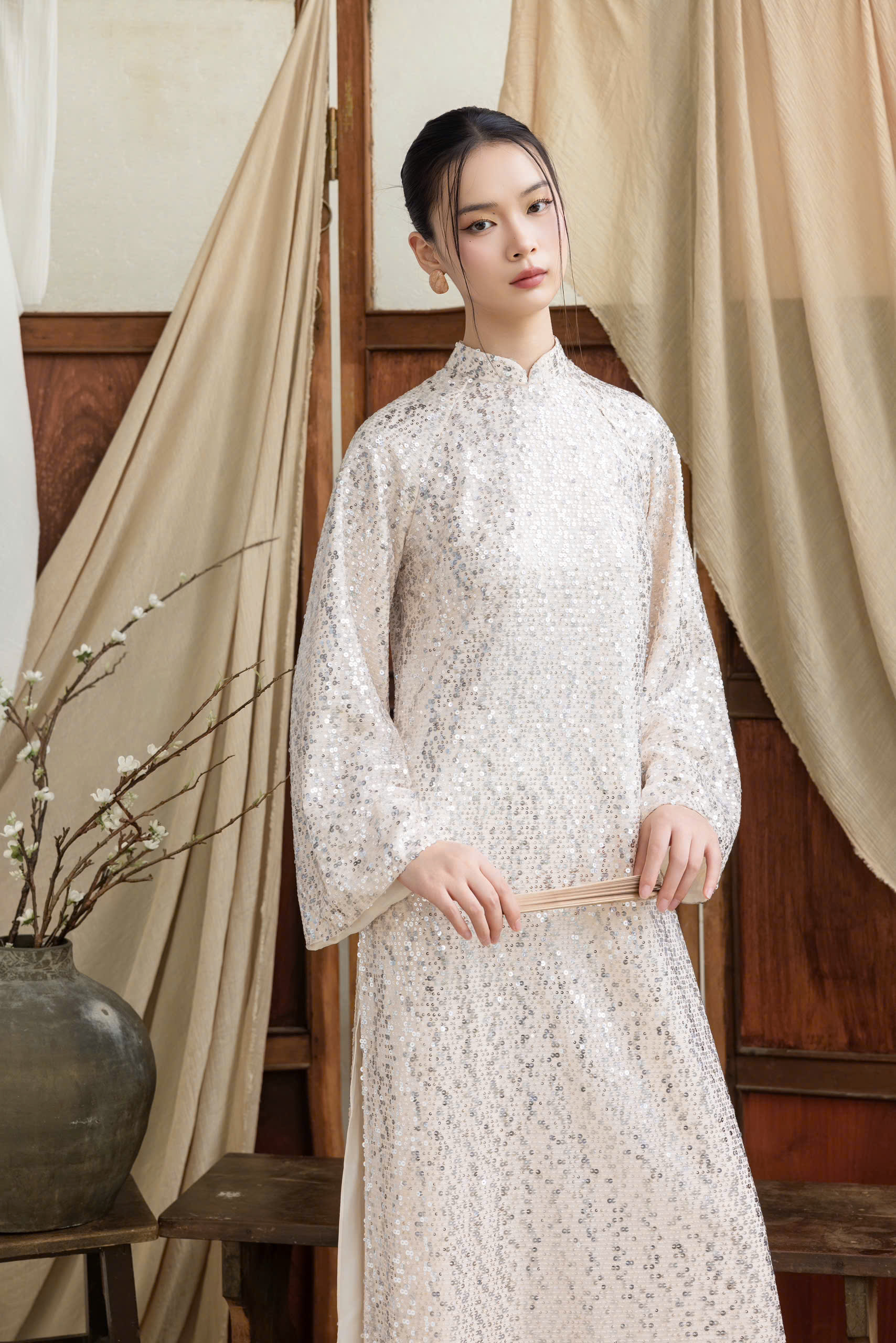 Đón Tết với tà áo dài lấp lánh đang "chiếm sóng" mọi phong cách! Chiếc áo dài này là sự kết hợp hoàn hảo giữa nét duyên dáng truyền thống và cảm hứng High-Fashion hiện đại. Chất liệu kim sa ánh vàng tinh tế giúp bạn "tỏa sáng" rực rỡ và "chốt deal" những bức ảnh "viral" nhất. Không cần cầu kỳ, chỉ cần item này là đủ để bạn "nâng cấp" vẻ ngoài chuẩn nàng thơ trong mọi dịp đặc biệt. Diện ngay và "Glow Up" thôi!