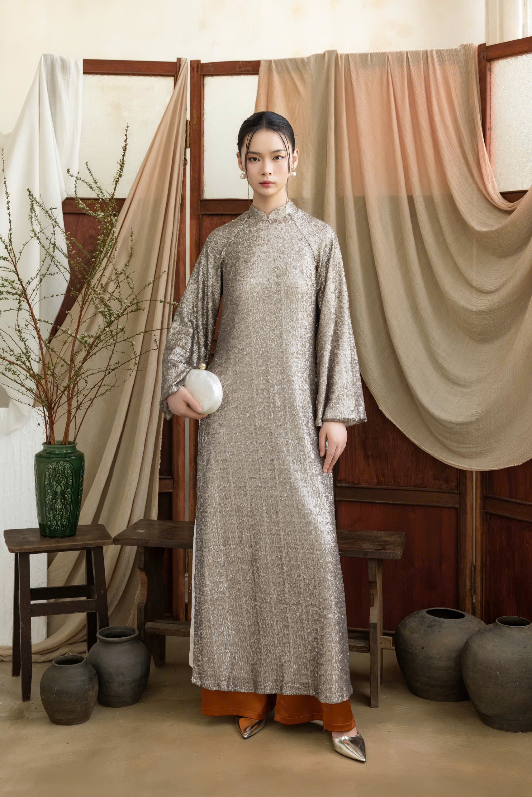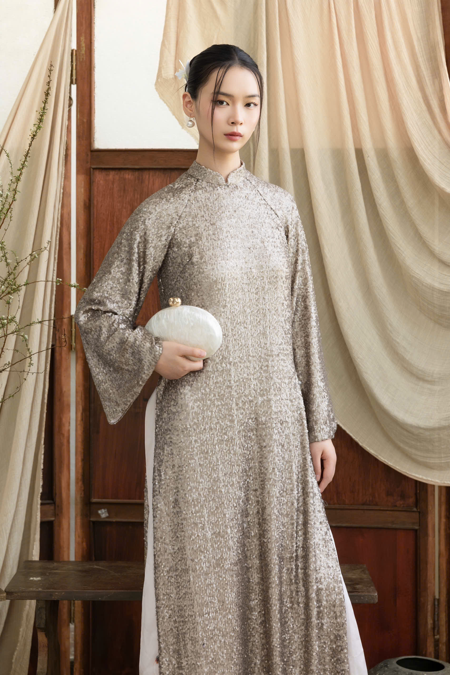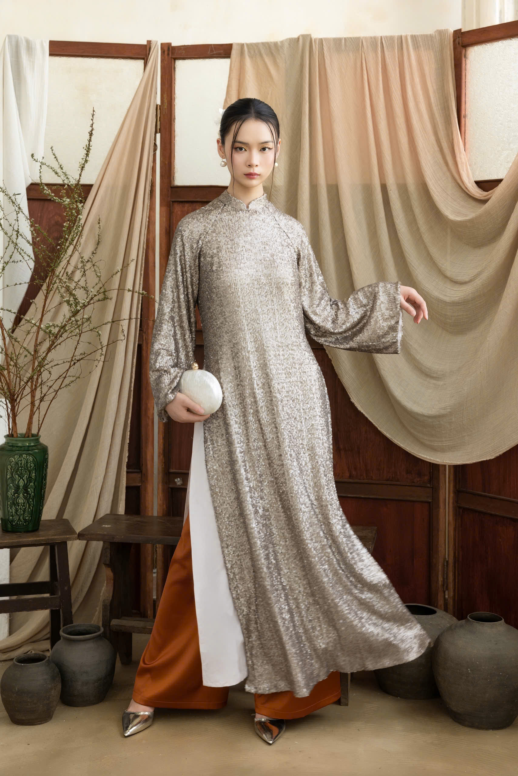 Đón Tết với tà áo dài lấp lánh đang "chiếm sóng" mọi phong cách! Chiếc áo dài này là sự kết hợp hoàn hảo giữa nét duyên dáng truyền thống và cảm hứng High-Fashion hiện đại. Chất liệu kim sa ánh vàng tinh tế giúp bạn "tỏa sáng" rực rỡ và "chốt deal" những bức ảnh "viral" nhất. Không cần cầu kỳ, chỉ cần item này là đủ để bạn "nâng cấp" vẻ ngoài chuẩn nàng thơ trong mọi dịp đặc biệt. Diện ngay và "Glow Up" thôi!